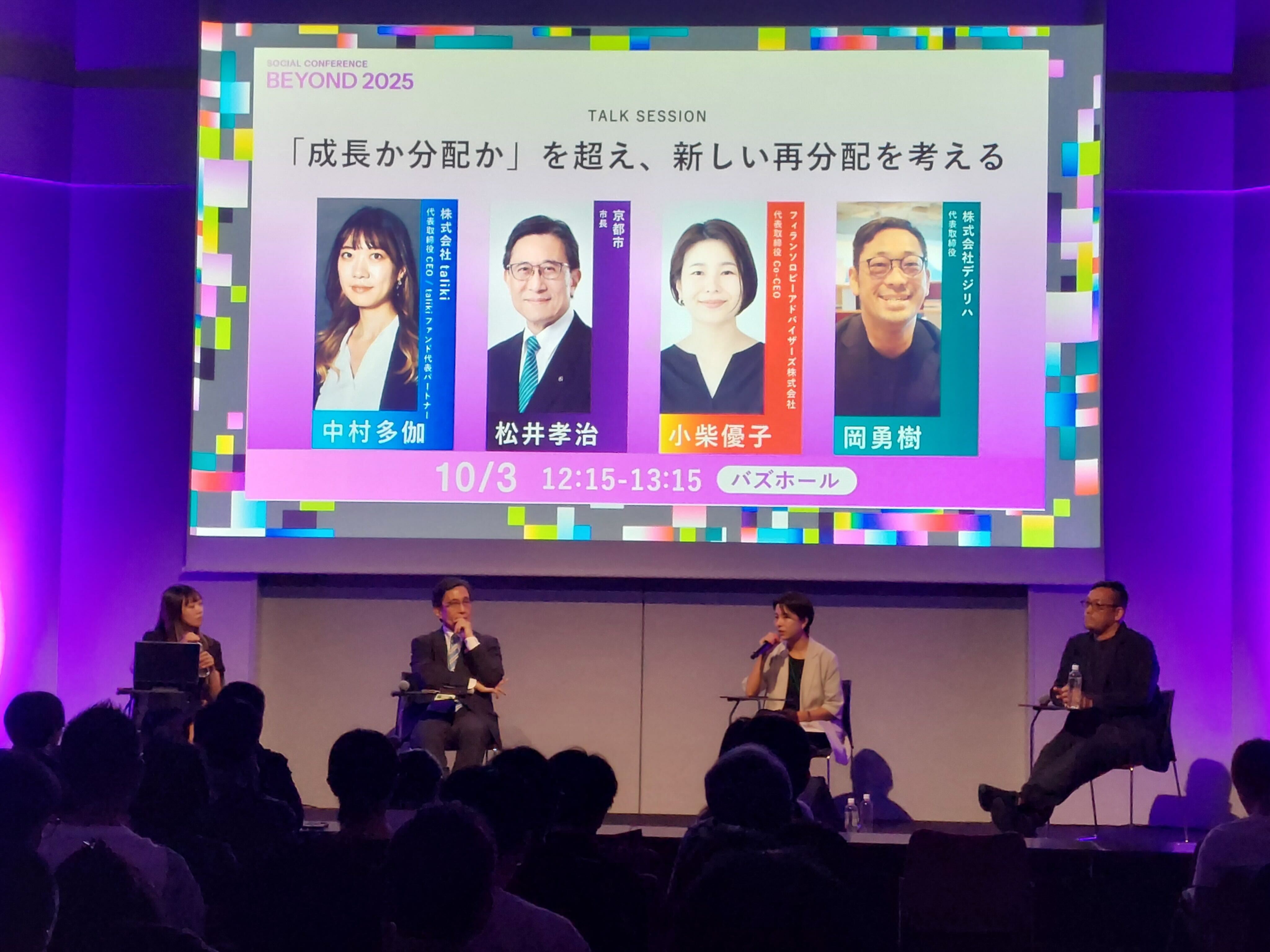 社会課題解決に取り組むプレイヤーを支援する株式会社talikiが主催するソーシャルカンファレンス「BEYOND 2025」に小柴が登壇しました。セクターや世代を越えた参加者が集い、“支援する/される”の関係を超えて、共に考えるイベントです。